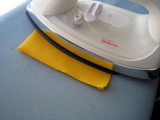 Press flat, so that you have a 4 1/2″ by 6″ rectangle with four flaps. Iron down, flip, iron again. Don’t over iron, it can make the fabric very stiff.