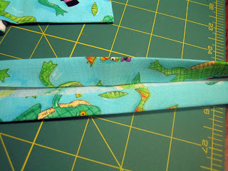 His room is all set up in a theme of cars and trucks, and I thought about using car fabric, but I didn’t have any on hand (and I’m trying to cut down my stash a bit), and I wanted something that can be used and then passed down to cousins, if we want (okay… and maybe a younger sibling someday). This combination of orange with white dots and froggies works well for both boys and girls, and I had plenty of both fabrics handy!