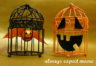 It is hard to believe now that these two cages started out looking very similar… but each one got a little different Pumpkin “twist” and became a unique Halloween decoration!