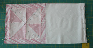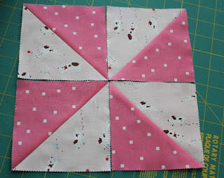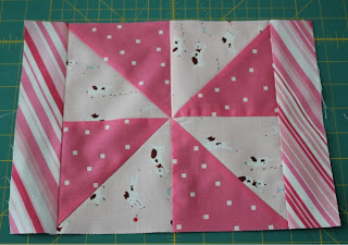 The block in the center is made with Sherbet Pips, I bought 2 charm packs a couple months back, and the rest of the fabric are just fat quarters I had in my stash.