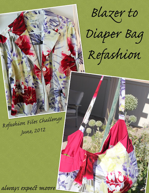 This bag has seen more use in the past 2 days than those blazers saw in the last 2 years! Thanks, Refashion Files for a great challenge!