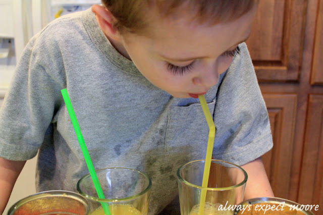Then came the fun part – the taste comparison! We started by tasting the “juice”. Though my son said he liked the First Street liquid best, he drained the DelMonte fastest. Probably because the DelMonte is sweeter tasting.