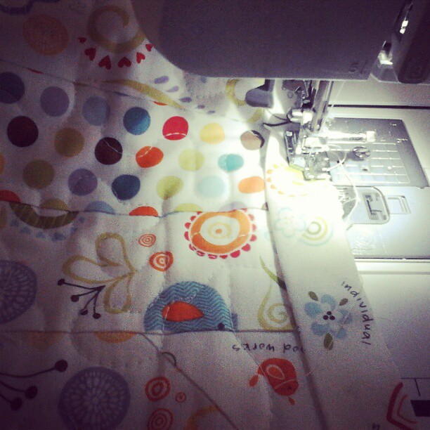Anyway, it was Wednesday afternoon, and I had 24 hours to complete a quilt. I gathered the kids in the car and headed down to the quilt shop, had my fabrics cut, and came back home. It wasn’t until the kids were fed, bathed, and asleep that I got to start on the rest of the process. For those of you who follow me on Instagram (I’m @craftmoore, if you’re an Instagrammer), you might have seen me share the process as I worked through the night…