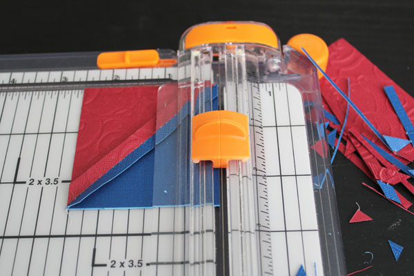 Also, all the layers of cardstock created a lot of bulk in the back of my block, so I cut away the excess. I could NEVER do this when quilting fabric, but for paper it is just fine.