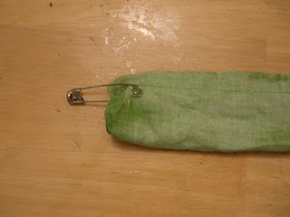 Use a safety pin and flip the tube right side out by pushing the pin down the inside of the tube.