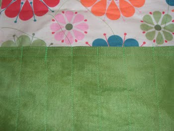 Place the coordinating fabric on top of one of the pieces that is 9 X 11. To make the pencil holders you will sew lines down 1 inch apart. I had seven pockets to put coloring pencils in.