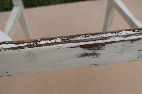 I used the Krylon Dual Paint and Primer spray paint to paint the chair. I was careful to use several light coats. After the first several coats dried, I turned the chair upside down to spray from a different angle, and get between all the wood on the chair.