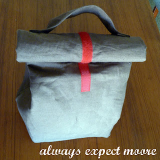 He’s been taking his lunch to work in plastic grocery bags because normal lunch sacks are too small. They don’t fit the leftovers, a soda, a couple bottles of water, and a piece of fruit. Luckily he has a creative wife! I made him this reusable lunch sack using a rough brown cloth on the outside, and part of a vinyl tablecloth for the inside. The vinyl is super easy to wipe off in the event that something spills, and the brown mimics the look of a brown paper bag – that way he has a “manly” lunch sack, and not something frilly or girly. I was really careful when making it that it would look as manly as possible, and not look cutesie and home-sewn. He really isn’t a “cutesie home sewn” kind of guy. Just further proof that opposites attract. : )