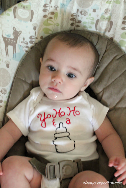 I made shirts for both the boys. The Birthday Boy had one with the number 4, and the word 4 written out. But the baby got a Pirate-themed onesie… Yo Ho Ho and a Bottle…