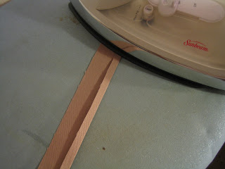 Iron over 1/4″ over on one side of each strip, towards the wrong side of the fabric.