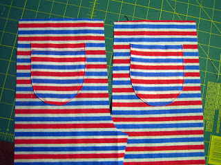 Today’s clothing item are yet another pair of shorts for LM. Fair warning: Though I love the design, I’m not so sure about the fabric. As I was working with it, it started to remind me of a cross between “jailhouse stripes” and “Fourth of July.”