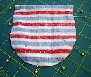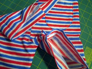 Today’s clothing item are yet another pair of shorts for LM. Fair warning: Though I love the design, I’m not so sure about the fabric. As I was working with it, it started to remind me of a cross between “jailhouse stripes” and “Fourth of July.”