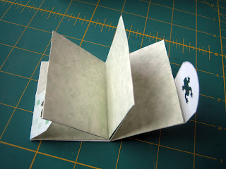 Glue this flaps down onto the front and back pockets. Your book is now done… except that you’ve now got 6 empty pockets!