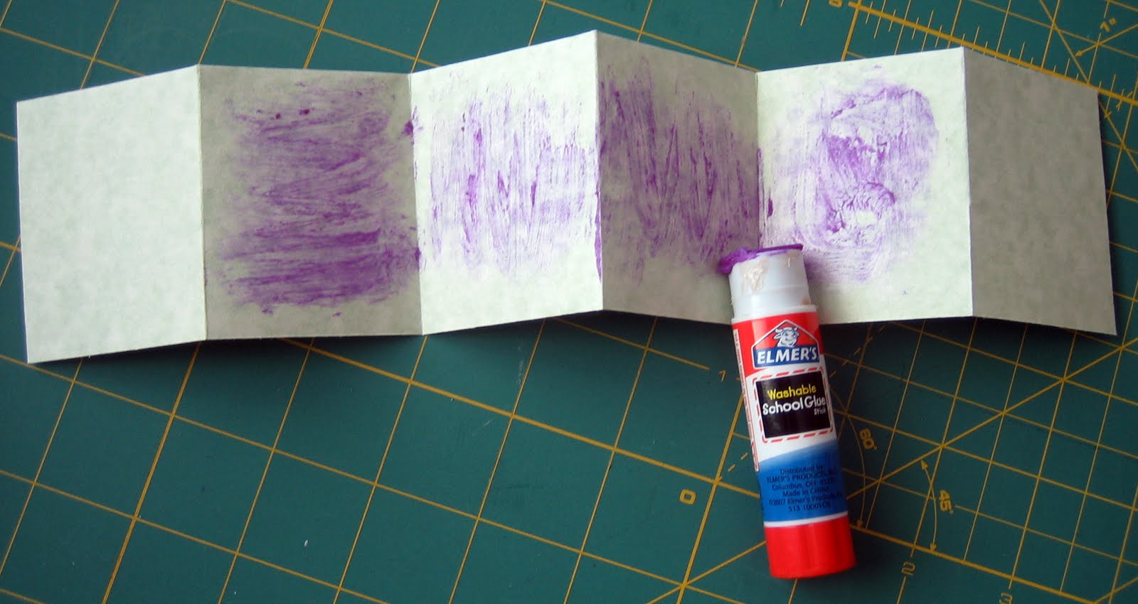 Grab a glue stick, and put glue on the four middle rectangles.