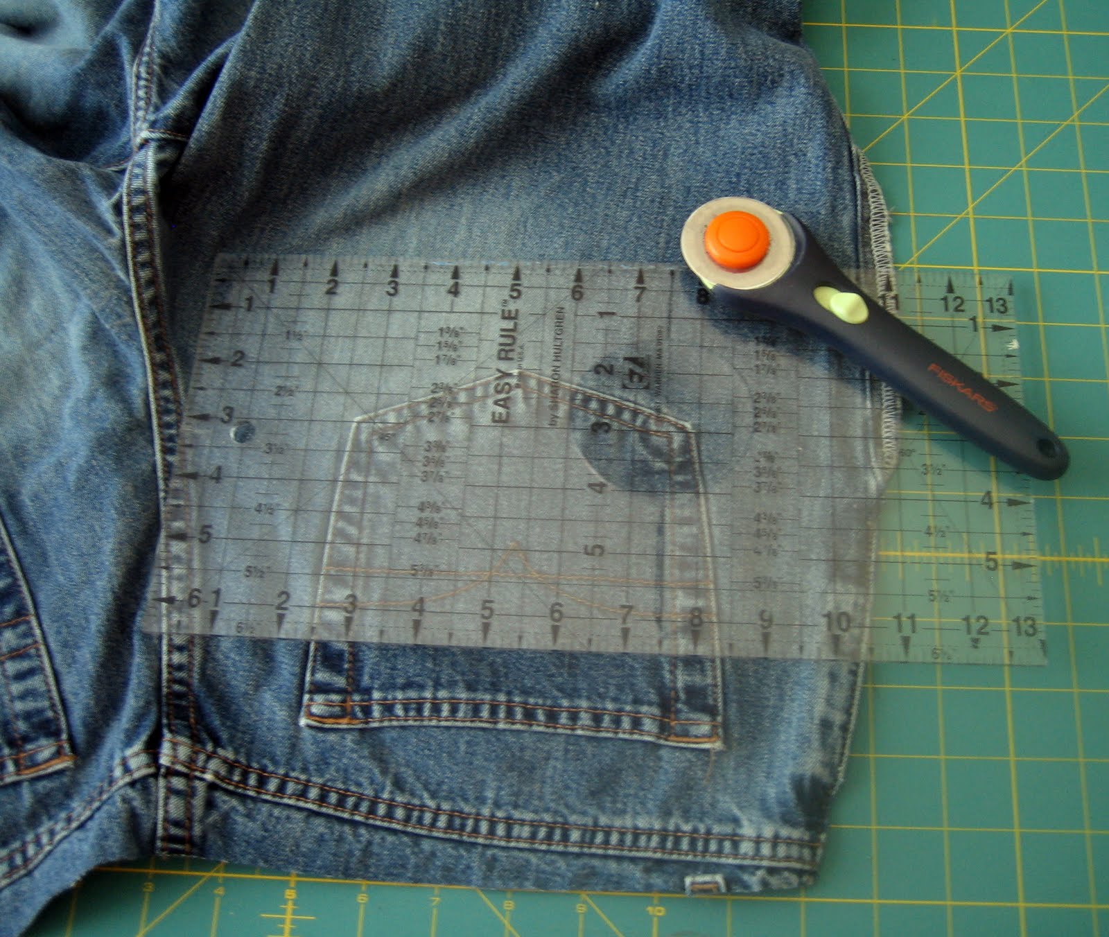 Today I’ll only be using the pockets, but don’t think that the rest of the pants are going to waste, I’m going to be cutting quilt squares out of the legs. I have an old denim quilt that I made back in college. The dog got to it… and it could use some repair patches. The great thing about denim quilts is that no matter how rough you treat them, they always look better for the wear. Jeans are awesome that way, aren’t they?