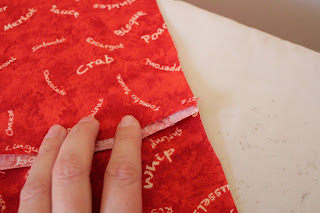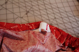 To start out, snag a pair of your husband’s boxers, turn them inside out, and trace yourself a pattern. If they’re really old, you could take them completely apart. I didn’t take a picture of this step because, although my husband very rarely reads this space, I have a feeling he wouldn’t appreciate me posting a picture of his underwear. : )