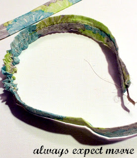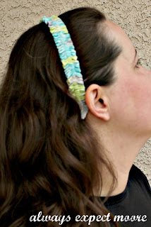You’ve probably seen similar headbands made with elastic running down the center. Those never stay put. Not on my head. Maybe I have a funny-shaped head, but I think I’m not the only one, considering that many of those elastic headbands started being made with grippy-rubber stuff to keep them in place. Which, incidentally, also don’t stay put on my head. That is why I made this headband was made with a traditional headband down the middle. Simple. Stays put. And doesn’t require re-doing my hair in order to put it back in place. It bears repeating – simple is good.
