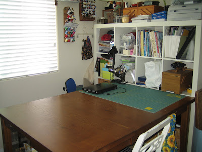 In one of Lolly’s posts, she put up some pictures of her craft room. It was totally eye opening. I thought to myself, “Wow, a craft room doesn’t have to be some dark, leftover corner of the house, hidden away so that my husband won’t mind the mess… it can actually be functional, organized, and well lit!?” Wow! Who knew!?