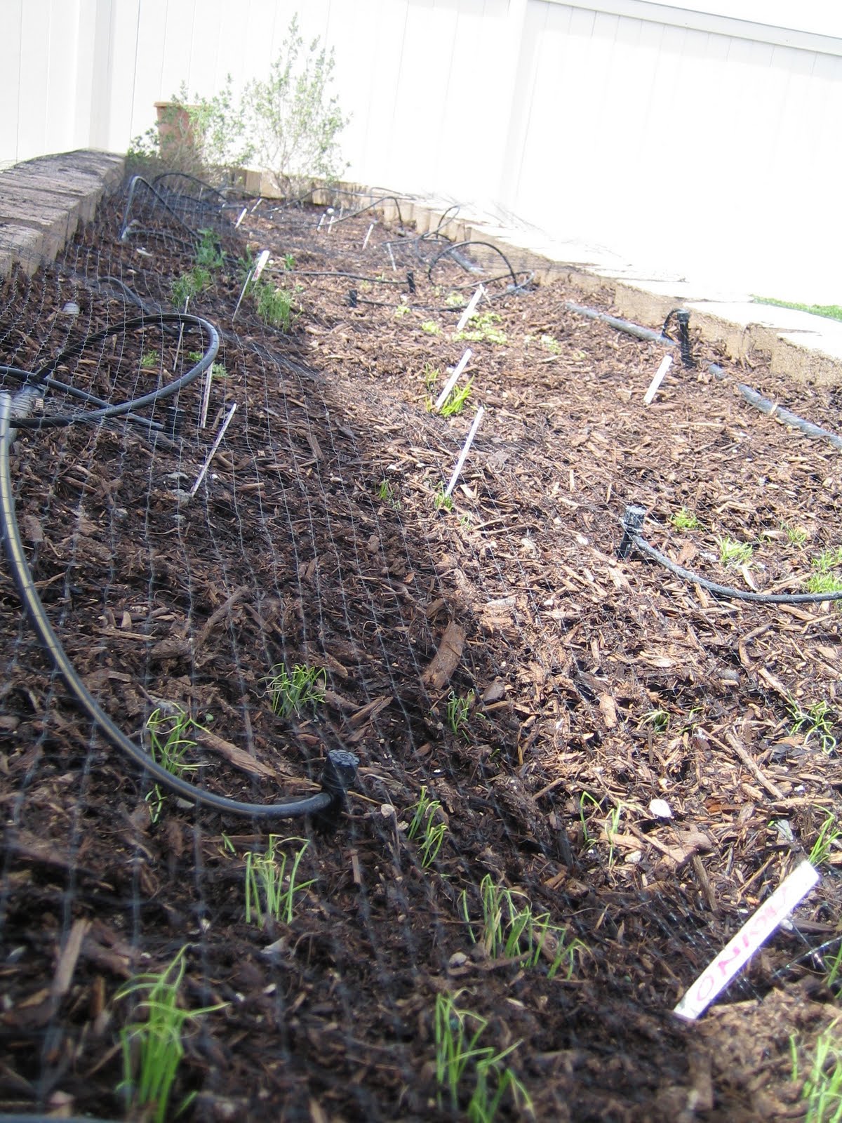 Those are onions, with some leeks and peas in the background. Also, I’ve got some tomatoes, carrots, parsley, oregano, lettuce and spinach growing… all from seeds! I started them out in egg-crates, and transplanted them into the planter beds yesterday. Hopefully they will do well! I’m looking forward to some yummy garden-fresh veggies! : )